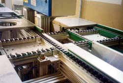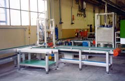 Linee di trasporto per l'assemblaggio meccanico a stazioni.